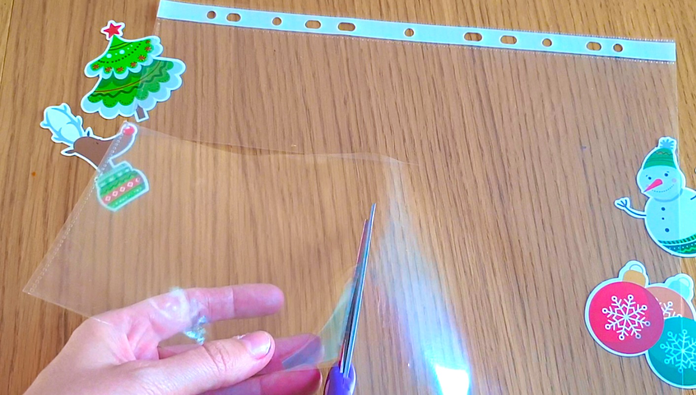 Now we create the globe! To do this, use a transparent plastic pouch. Cut out a square that is the same size as your colouring page. Use the outline of the colouring page as a template and cut the sheet to the same measurements.